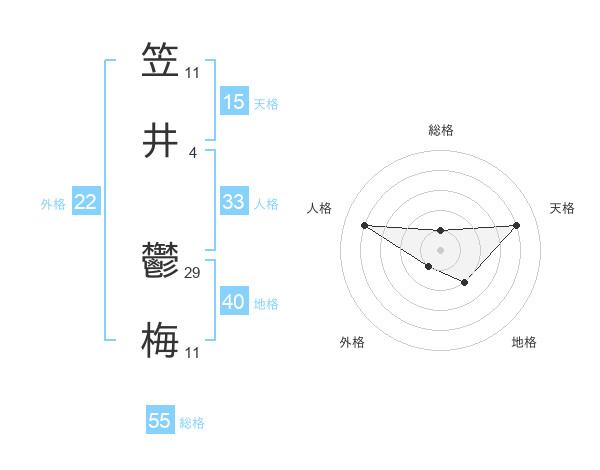 笠井 鬱梅さんを姓名の画数から五運を鑑定