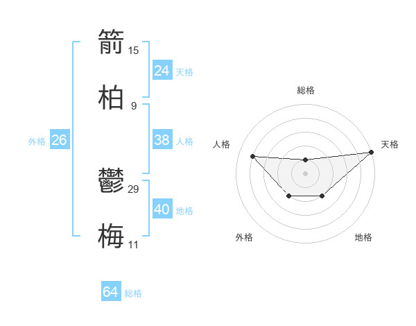 箭柏 鬱梅さんを姓名の画数から五運を鑑定