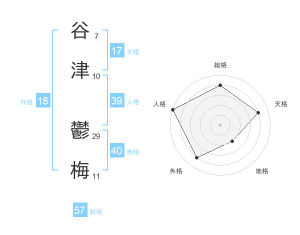谷津 鬱梅さんの総格は57画の4点!