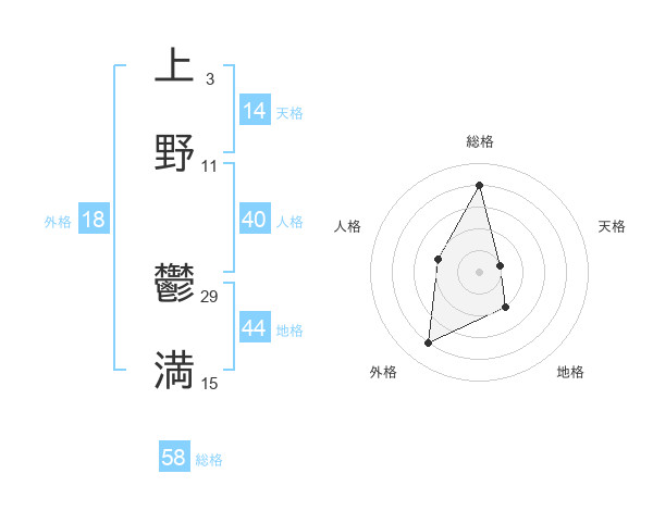 上野 鬱満さんを姓名の画数から五運を鑑定