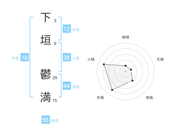 下垣 鬱満さんを姓名の画数から五運を鑑定