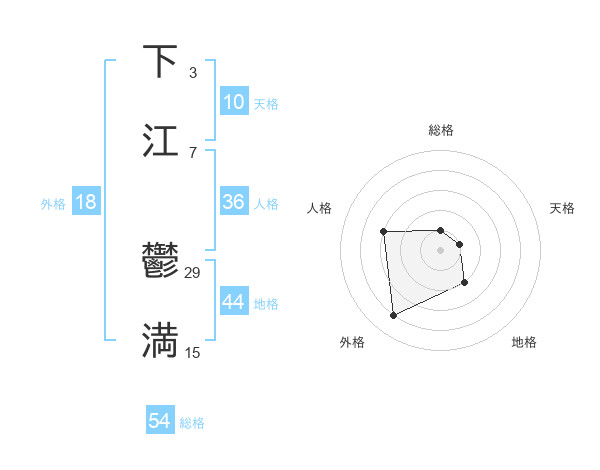 下江 鬱満さんの総格は54画の1点!