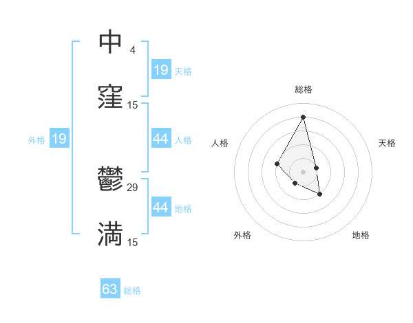 中窪 鬱満さんの総格は63画の4点!