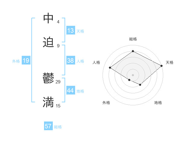 中迫 鬱満さんの総格は57画の4点!
