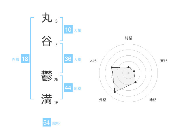丸谷 鬱満さんを姓名の画数から五運を鑑定