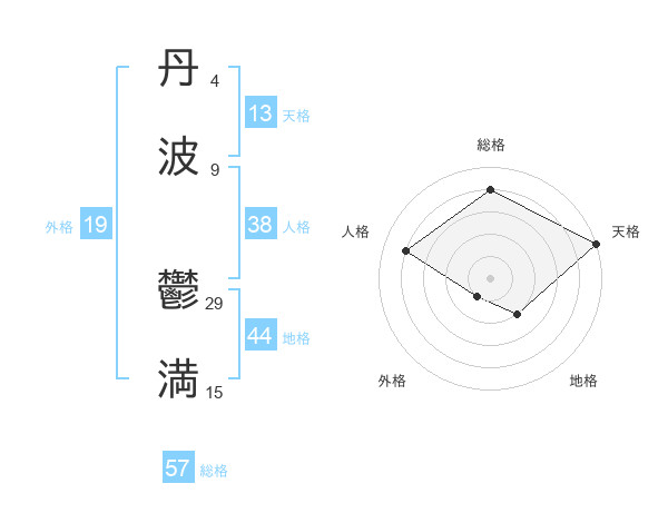 丹波 鬱満さんを姓名の画数から五運を鑑定