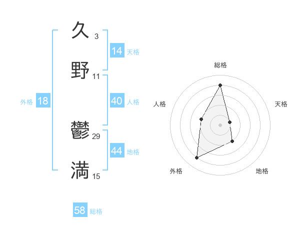 久野 鬱満さんを姓名の画数から五運を鑑定