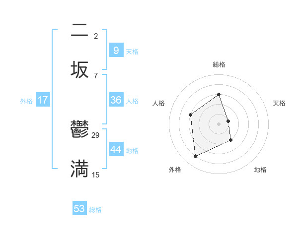 二坂 鬱満さんの総格は53画の3点!