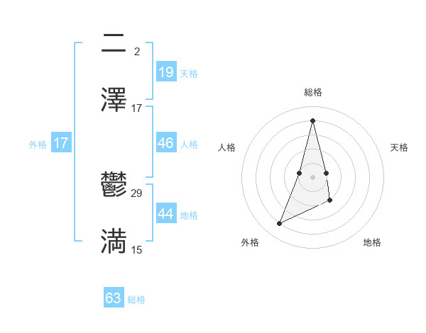 二澤 鬱満さんの総格は63画の4点!