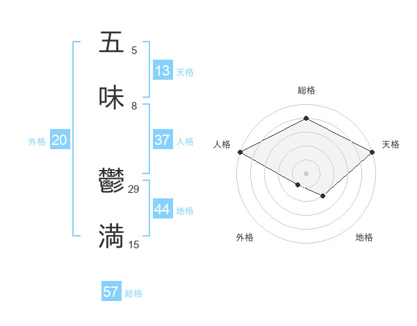 五味 鬱満さんの天格は13画の5点!