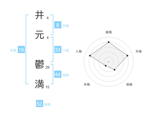 井元 鬱満さんの総格は52画の4点!