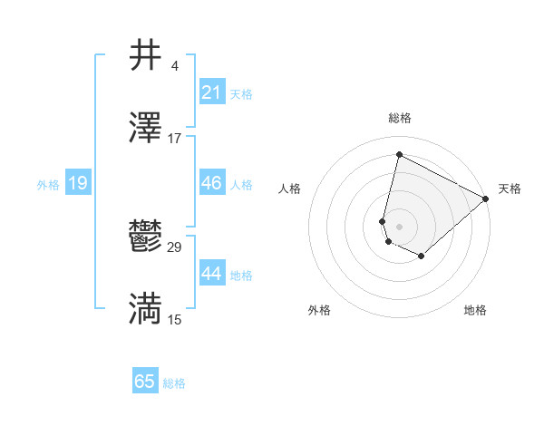 井澤 鬱満さんを姓名の画数から五運を鑑定