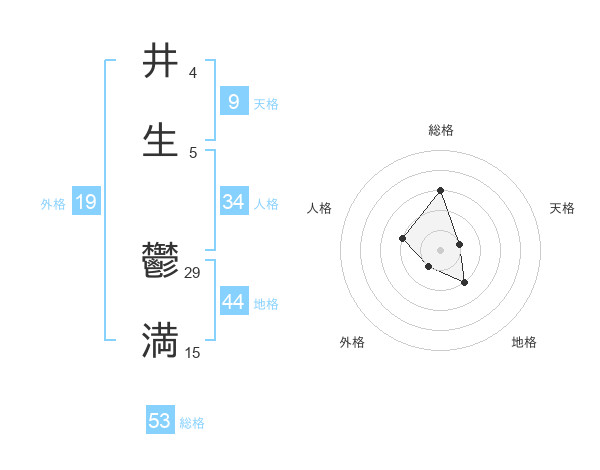 井生 鬱満さんの総格は53画の3点!