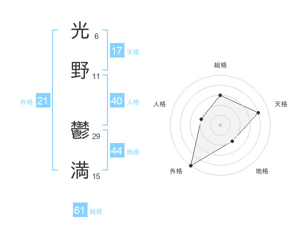 光野 鬱満さんの総格は61画の3点!