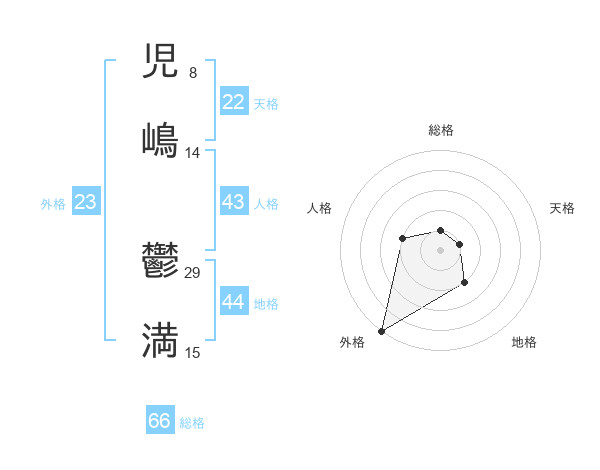 児嶋 鬱満さんの外格は23画の5点!