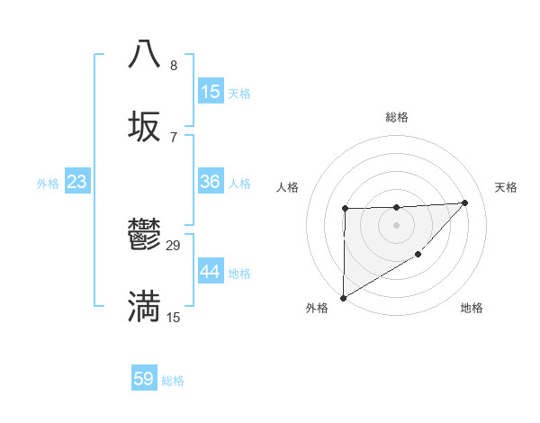 八坂 鬱満さんの総格は59画の1点!