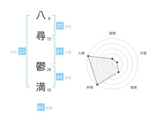 八尋 鬱満さんの総格は64画の1点!