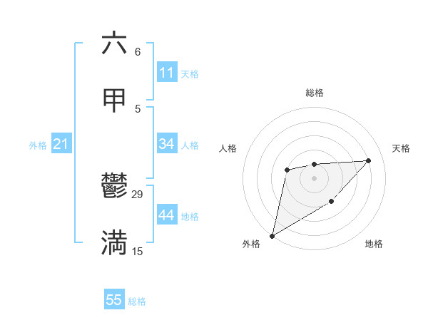 六甲 鬱満さんを姓名の画数から五運を鑑定