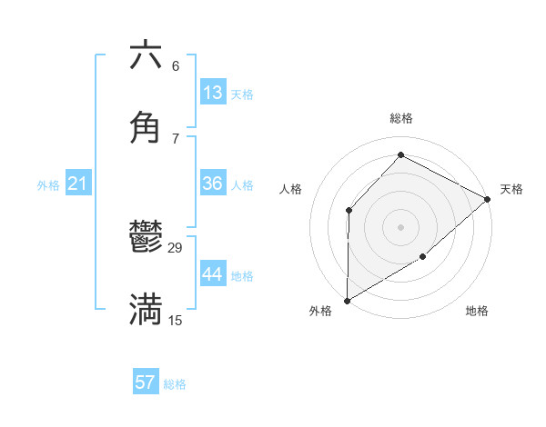 六角 鬱満さんの外格は21画の5点!