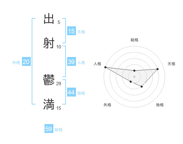 出射 鬱満さんの総格は59画の1点!