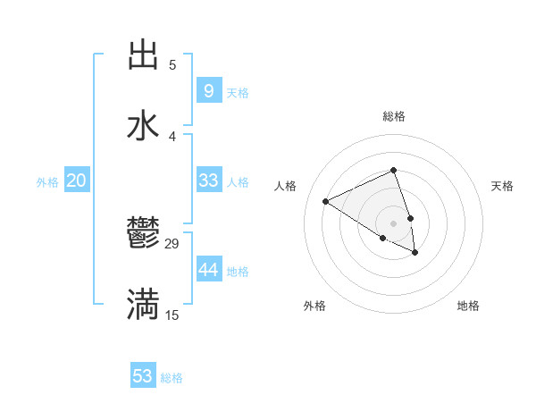 出水 鬱満さんの総格は53画の3点!