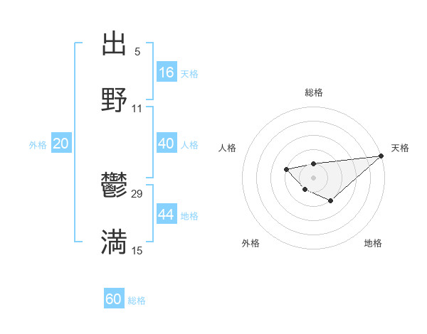 出野 鬱満さんの総格は60画の1点!