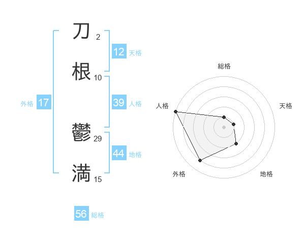 刀根 鬱満さんの総格は56画の1点!