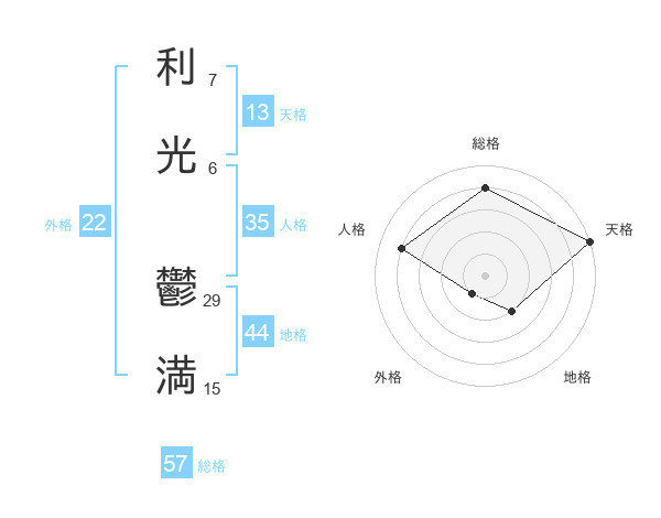 利光 鬱満さんの総格は57画の4点!