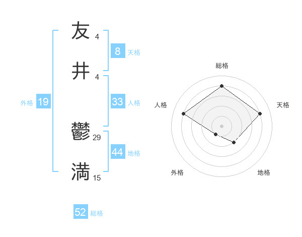 友井 鬱満さんを姓名の画数から五運を鑑定