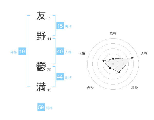 友野 鬱満さんの天格は15画の4点!