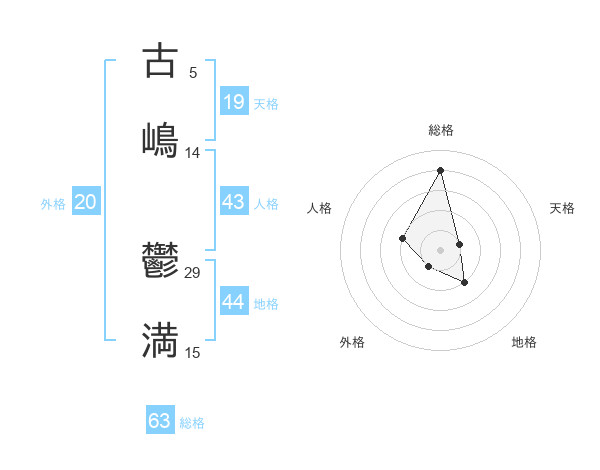 古嶋 鬱満さんの総格は63画の4点!