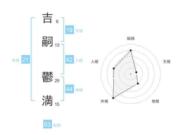 吉嗣 鬱満さんを姓名の画数から五運を鑑定
