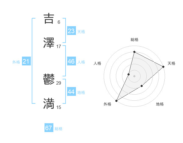 吉澤 鬱満さんを姓名の画数から五運を鑑定
