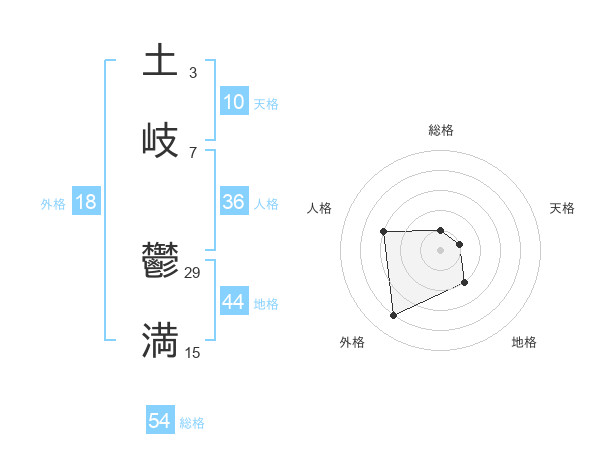 土岐 鬱満さんの総格は54画の1点!