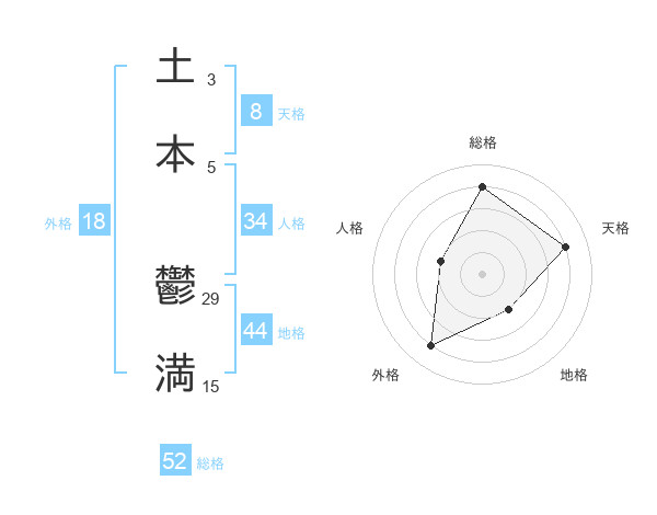 土本 鬱満さんの総格は52画の4点!