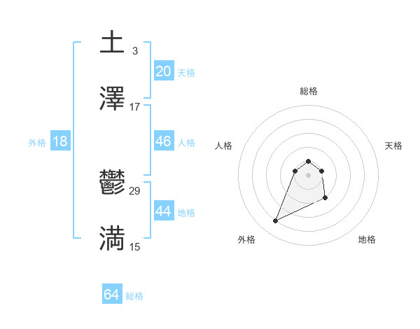 土澤 鬱満さんの総格は64画の1点!