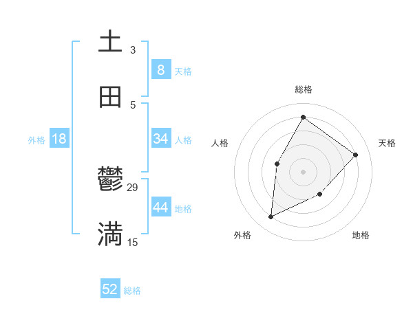 土田 鬱満さんの総格は52画の4点!