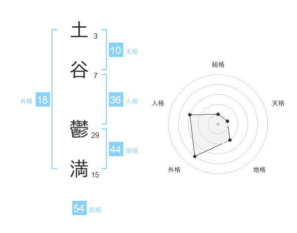 土谷 鬱満さんを姓名の画数から五運を鑑定
