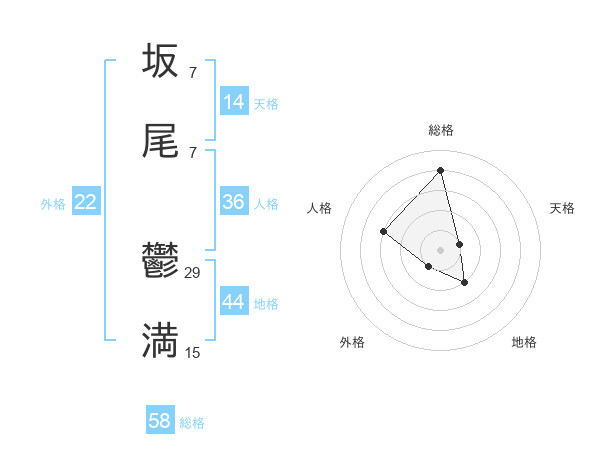 坂尾 鬱満さんの外格は22画の1点!