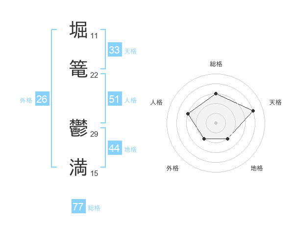 堀篭 鬱満さんの総格は77画の3点!