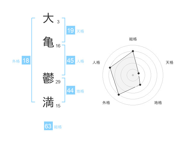 大亀 鬱満さんの総格は63画の4点!