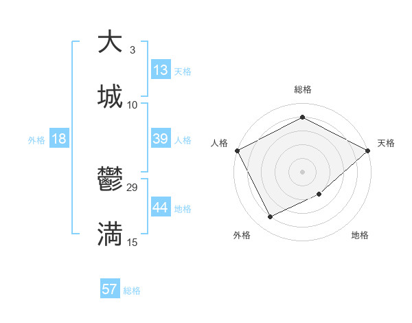 大城 鬱満さんを姓名の画数から五運を鑑定