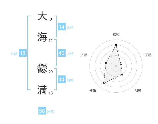 大海 鬱満さんの総格は58画の4点!