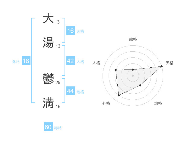 大湯 鬱満さんを姓名の画数から五運を鑑定