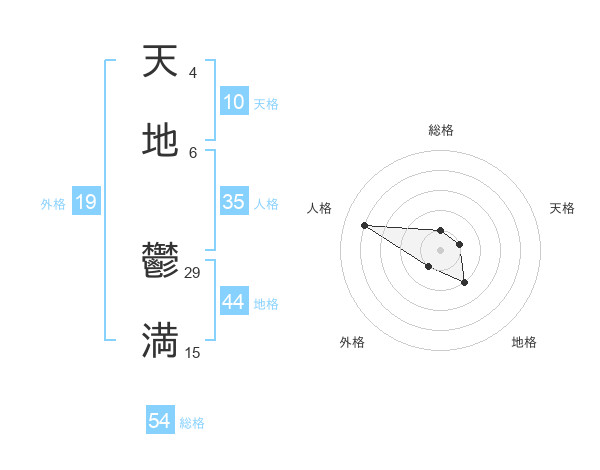 天地 鬱満さんを姓名の画数から五運を鑑定