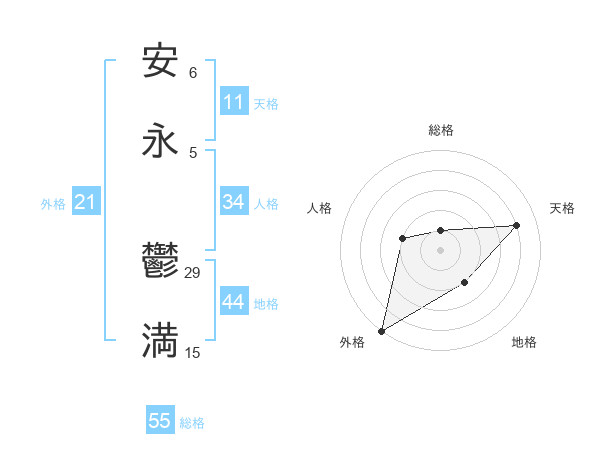 安永 鬱満さんを姓名の画数から五運を鑑定