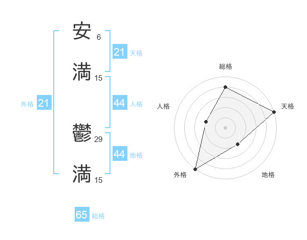 安満 鬱満さんの総格は65画の4点!