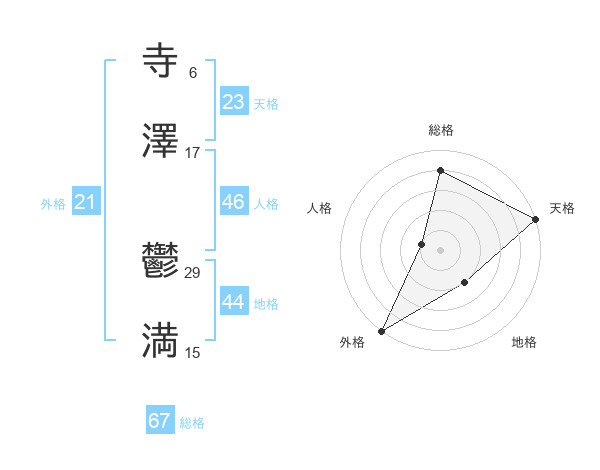 寺澤 鬱満さんを姓名の画数から五運を鑑定