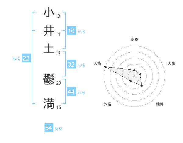 小井土 鬱満さんの外格は22画の1点!