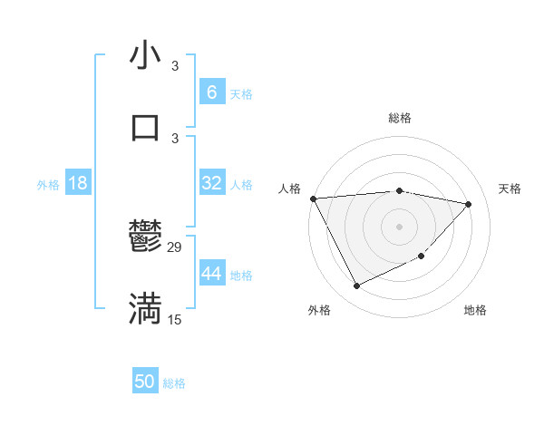 小口 鬱満さんの総格は50画の2点!